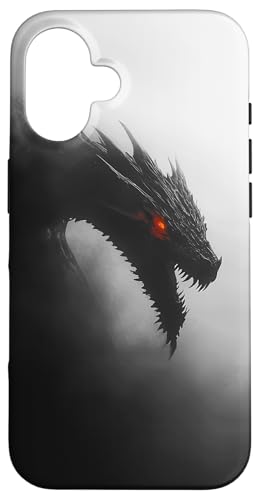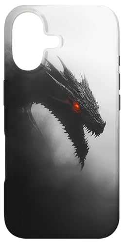 Dragon - Mystique Noir et Blanc émergeant de la Brume Coque pour iPhone 16 Plus