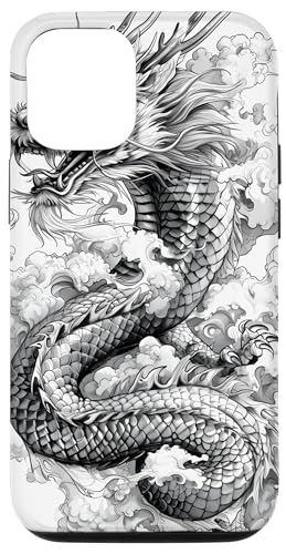 Illustration découpée en Forme de Dragon en Noir Monotone Coque pour iPhone 12/12 Pro