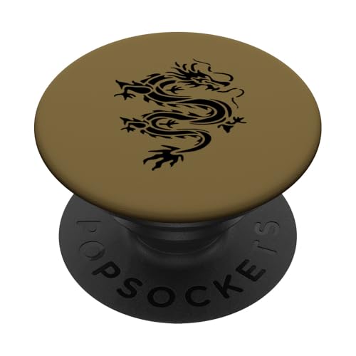 Illustration découpée en Forme de Dragon en Noir Monotone PopSockets PopGrip Adhésif