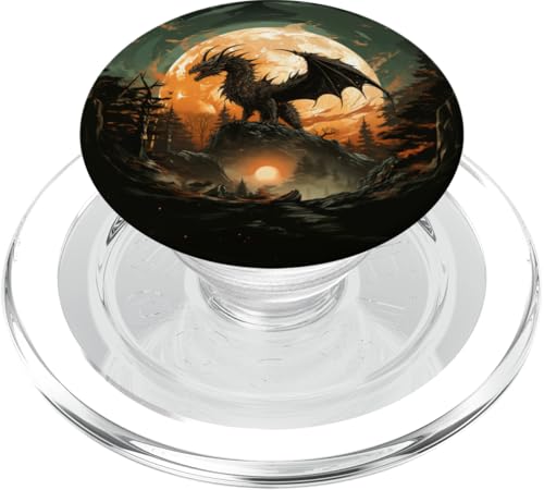 Graphisme Noir Dragon Moon PopSockets PopGrip pour MagSafe