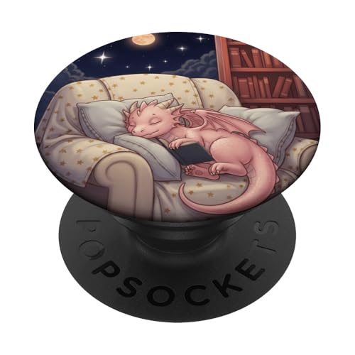 Bibliothèque Dragon Night Stars PopSockets PopGrip Adhésif