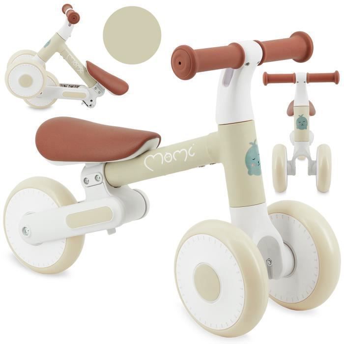 MoMi DEX - Draisienne tricycle sans pédales pliable - Léger - 2 hauteurs de selle - 12-36 mois - Jusqu’à 20 kg - Beige