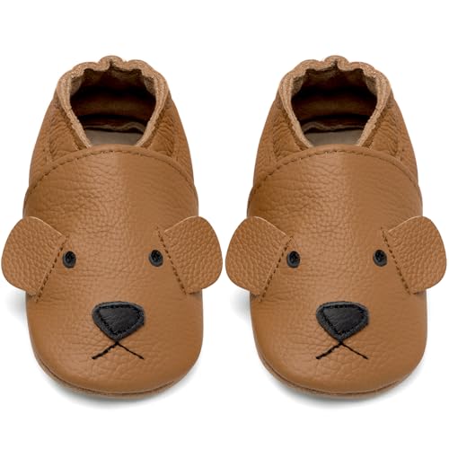 IceUnicorn Chausson Bebe Chausson Cuir Souple Bebe Garçon Fille Premiers Pas Chaussons Bébé(Brun Renarde, 12-18 mois)
