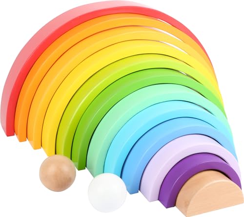 small foot Blocs de construction en bois Arc-en-ciel XL, 12 pcs. et 2 boules, à partir de 1 an, 11412
