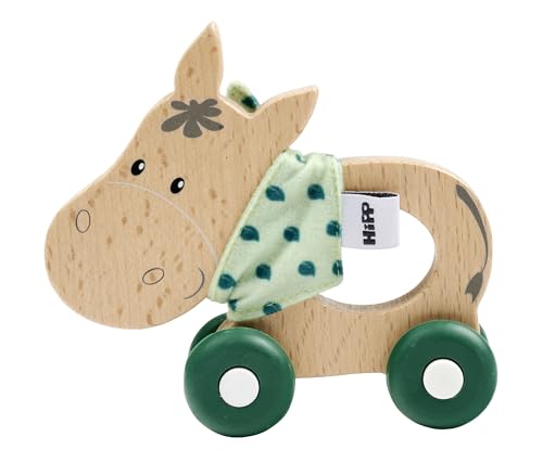 Eichhorn - Collection Baby Hipp - Ane Coulissant avec Tissu, Roues silencieuses en Silicone, Longueur 12 cm, 100% Bois de hêtre certifié FSC, Convient aux Enfants à partir de 1 an
