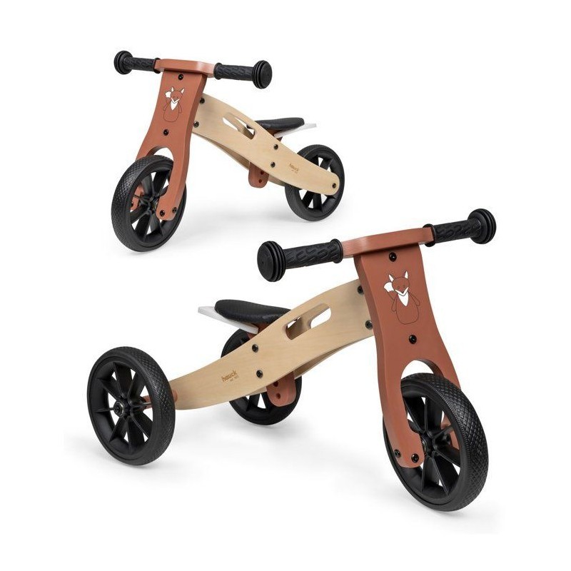 Hauck First Ride Eco 2in1 en Bois, Tricycle et Draisienne Evolutive dès 1 an à 20 kg, Roues 7,5", Selle Réglable, Poignée de Transport, Motif Renard