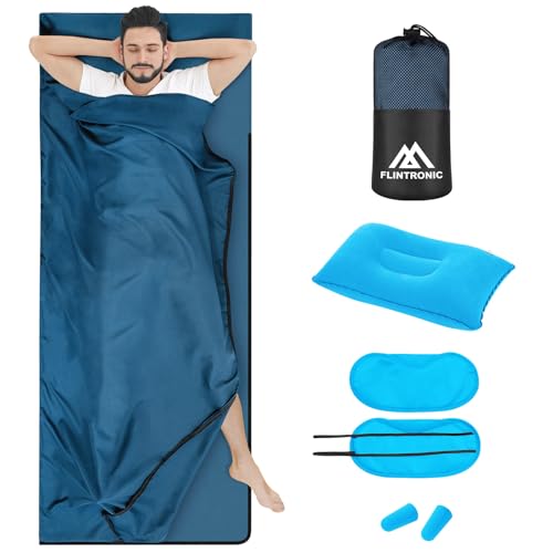 flintronic 2in1 Drap de Sac de Couchage Léger 220 x 90cm, Sac de Couchage avec Fermeture Éclair Continue, Sac Couchage Drap avec Compartiment pour Oreiller, Sac Couchage Portable pour Voyage Camping