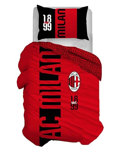 hermet Milan Parure de lit Simple en Coton, Housse de Couette, Sac + taie d'oreiller, 100% Coton, Produit Officiel, (ne Contient Pas de Drap Housse avec Coins)