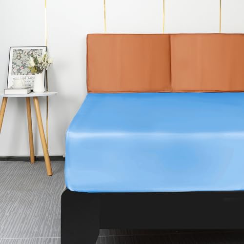 Lirex Drap Housse Satin 150x200cm, pour Matelas Jusqu'à 35 cm, Drap de lit en Satin de Soie Polyester Lisse Respirant, Bleu Clair