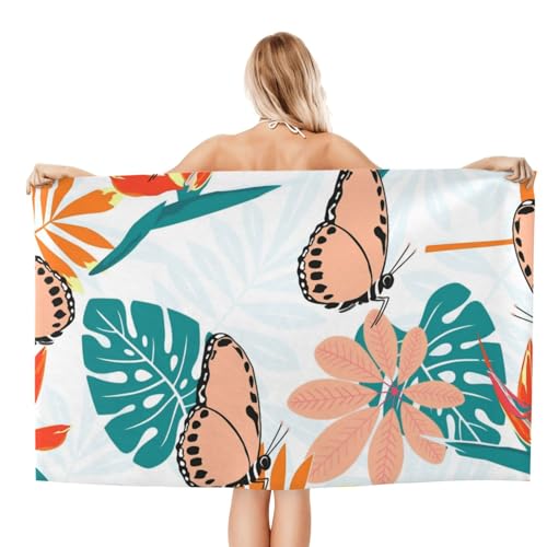 EMENZA Serviettes de Plage 100 x 200 cm Papillon, 3D Fleur Drap de Plage XXL Microfibre à Séchage Rapide pour Femme Homme, Coton, Serviette de Bain Grande Taille pour Sauna, Piscine, Camping