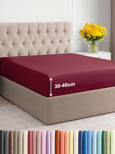 Drap Housse 120x200 cm Bonnet 40 cm extra profond - Microfibre de Polyester Brossé Douce - Matelas Épais jusqu’à 40 cm (16") - OEKO-TEX - Résistant au rétrécissement et à la décoloration - Bordeaux
