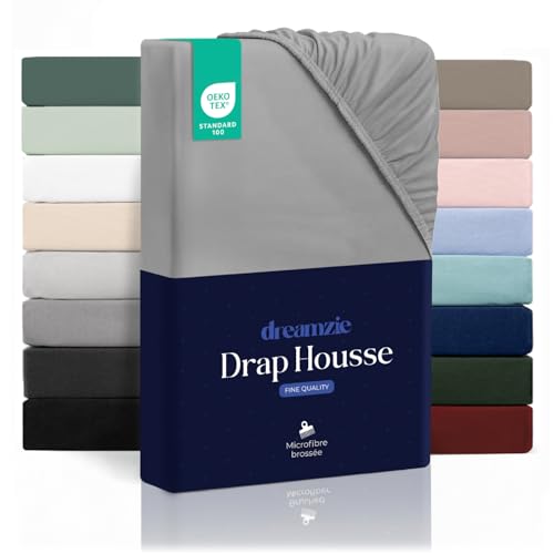 Dreamzie - Drap Housse 120x200 Bonnet 35 cm | Microfibre Ultra Douce - Matelas Épais - Oeko-Tex | Confort, Respirabilité, Entretien Facile - Gris