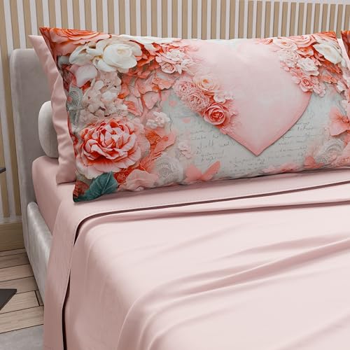 PETTI Artigiani Italiani - Parure de Draps en Coton pour Lit 1 Place et Demi avec Taies d'oreiller et Drap Housse 120x200, Motif Floral 36 Rose Poudré, 100% Fabriqué en Italie
