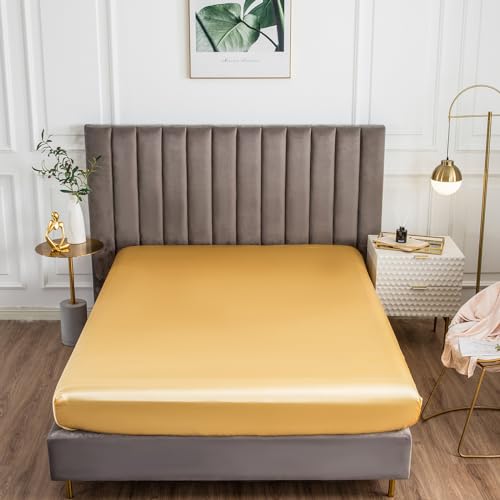 YASMENG Drap Housse 140x190 Satin Beige Or Uni Bonnet 30 cm Soyeux Brillant Luxe Soie Drap de lit en Satin de Soie Polyester Douce Lisse Respirant pour Matelas Épais