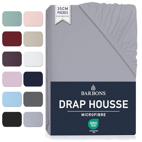 Barbons Drap Housse 140x190 / 140x200 cm - Bonnet 35 cm pour Matelas Épais - 100% Polyester Microfibre - Oeko-Tex Certifié - Anti-Peeling et Élastique Complet - 140 x 200 Gris Clair