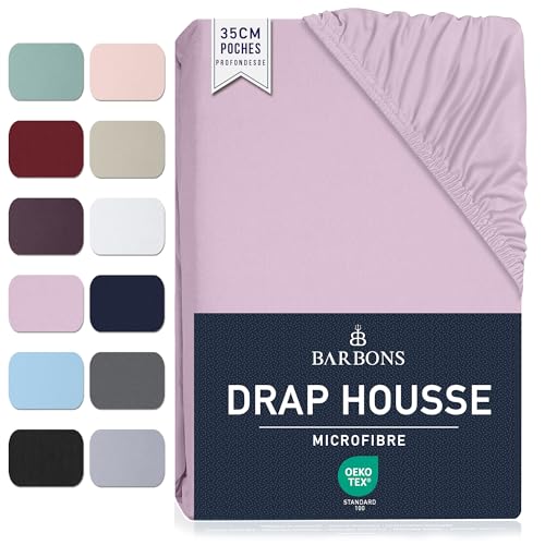 Barbons Drap Housse 140x190 / 140x200 cm - Bonnet 35 cm pour Matelas Épais - 100% Polyester Microfibre - Oeko-Tex Certifié - Anti-Peeling et Élastique Complet - 140 x 200 Lavande
