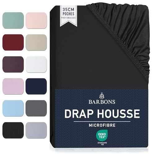 Barbons Drap Housse 140x190 / 140x200 cm - Bonnet 35 cm pour Matelas Épais - 100% Polyester Microfibre - Oeko-Tex Certifié - Anti-Peeling et Élastique Complet - 140 x 200 Noir
