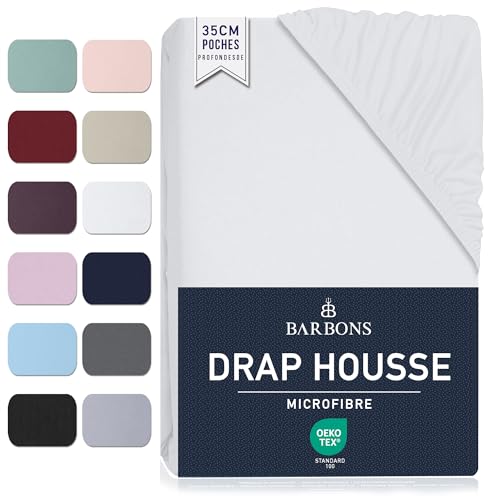 Barbons Drap Housse 140x190 / 140x200 cm - Bonnet 35 cm pour Matelas Épais - 100% Polyester Microfibre - Oeko-Tex Certifié - Anti-Peeling et Élastique Complet - 140 x 200 Blanc