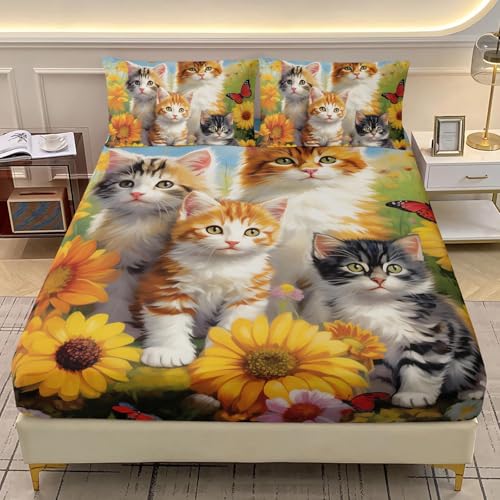 TACOKI Drap Housse 140x190 Chat Mignon, 3D Amoureux des Chats Drap-Housse 140 x 190, Drap Housse Enfant Adulte avec 2 Taies d'oreillers pour Matelas Épais d1613