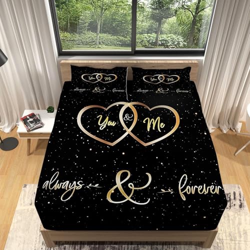 Drap Housse 140x190 Amour Noir, 3D Drap-Housse Amour Noir Drap Poche Profonde 30 cm, Draps Housse Microfibre, 2 Taies d'oreillers, pour Matelas éPais ii6398