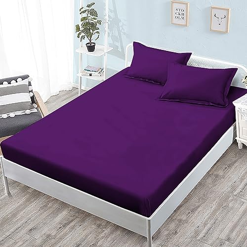 Drap Housse 140x190 Violet Drap-Housse Couleur Unie Drap Plat pour Lit avec Grand Bonnet de 30 cm Draps Housse Microfibre et 2 Taies d'oreillers, pour Matelas éPais