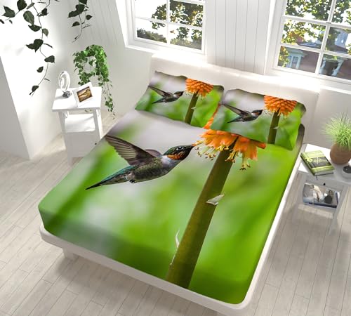 Drap Housse 140X190 Oiseau - Mouche Bedding Drap Housse Coupes De 30 Cm pour Matelas Épais,Réglable en Microfibre Brossé Extra Doux,Résistant, Anti Plis