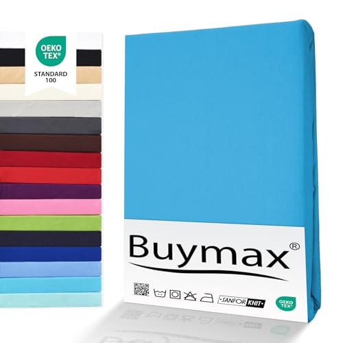 Buymax® Drap-Housse 70x140 cm en Jersey 100% Coton pour Lit d’Enfant – Hauteur de Matelas Jusqu’à 15 cm, Couleur Turquoise
