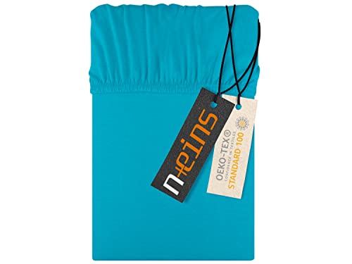 Npluseins Drap Housse 70x140 Bebe en Jersey 100% Coton Bebe - Doux, Respirant et résistant - certifié Oeko-TEX - Disponible en 22 Couleurs et 6 Tailles, Turquoise