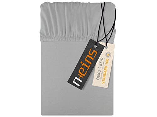 Npluseins Drap Housse 70x140 Bebe en Jersey 100% Coton Bebe - Doux, Respirant et résistant - certifié Oeko-TEX - Disponible en 22 Couleurs et 6 Tailles, Argent