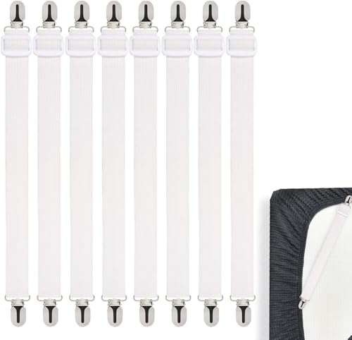 LIHAO 8 pcs Attache Drap Housse réglable, TAttache Sangle Elastique pour Drap Lit/Canapé/Housse de Repassage/Matelas, Blanc