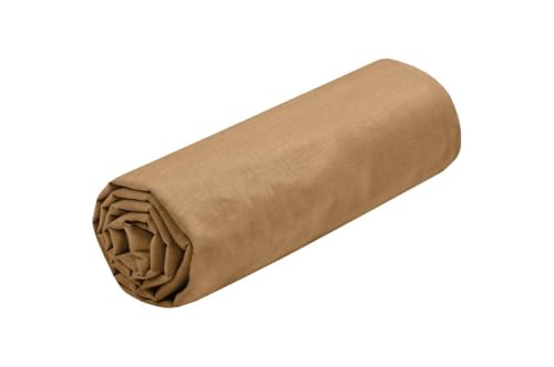STOF - Drap Housse -Taille 160x200 cm Grand Bonnet 30 cm -100% Coton certifié Oeko-Tex - Couleur Curry -Modèle Eden - Linge de Lit pour Maison - Doux et Confortable pour Nid Douillet