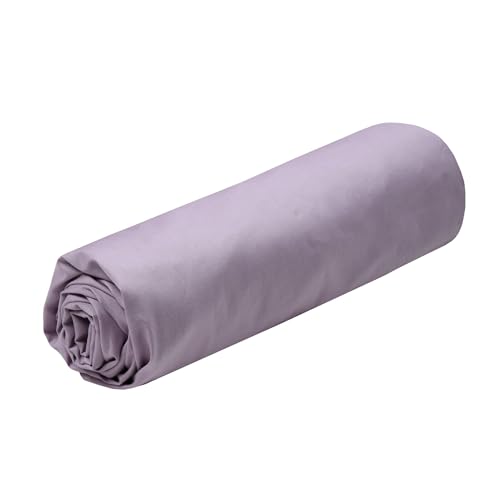 STOF - Drap Housse - Taille 160x200 cm Grand Bonnet 30 cm - Qualité Percale de Coton - 100% Coton certifié Oeko-Tex - Couleur Parme - Modèle Elysée - Linge de lit pour Maison - Doux et Confortable