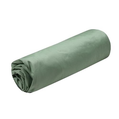 STOF - Drap Housse - Taille 160x200 cm Grand Bonnet 30 cm - Qualité Percale de Coton - 100% Coton certifié Oeko-Tex - Couleur Vert - Modèle Elysée - Linge de lit pour Maison - Doux et Confortable