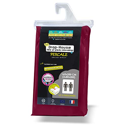 Linge des Familles - Drap Housse 2x80x200 pour Lit Articulé 160x200 TPR - 100% Coton Percale - Cerise - Grand Bonnet 30 cm - Elastique Tout Autour - Oeko-TEX® Standard 100 - Made in Europe