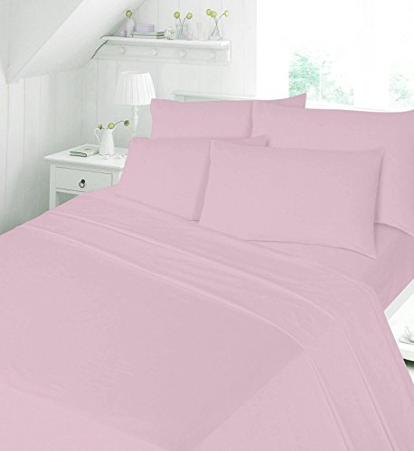 Artistic Fashionista Drap plat en flanelle 100 % coton brossé uni – simple, double, king size, super king size (simple, rose)