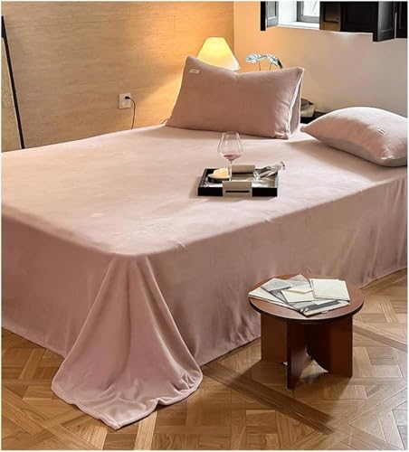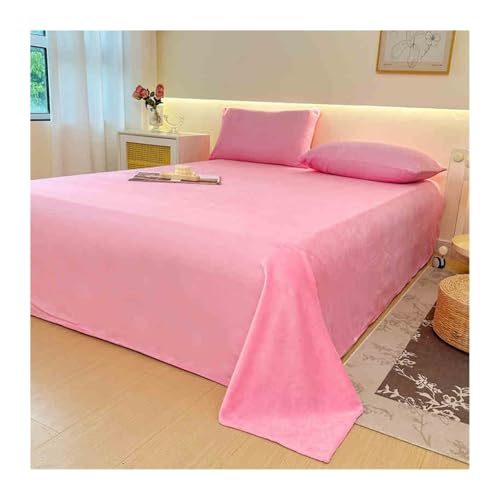 Drap Plat en Flanelle Uniquement Twin Queen King Drap De Lit 1 Pièce Doux Et Lourd Drap De Lit Respirant Et Confortable, Pink, 160x230cm