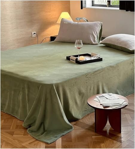 Drap Plat en Flanelle Uniquement Twin Queen King Drap De Lit 1 Pièce Doux Et Lourd Drap De Lit Respirant Et Confortable, Green, 245x270cm