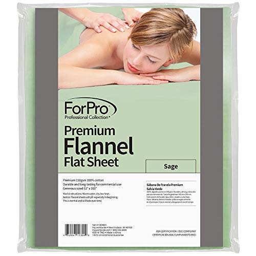 ForPro Professional Collection Drap plat en flanelle de qualité supérieure pour table de massage, ultra léger, résistant aux taches et infroissable, 160 x 254 cm (l x L), sauge