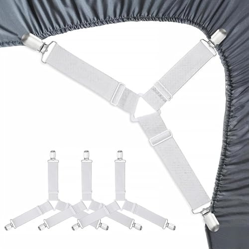 4PCS Tendeur Drap Housse, Blanc Attache Drap Housse,Attache Drap Housse,Blanches Aattache Drap Housse,Sangles pour Draps de Lit,Attache Drap,Tendeurs De Drap pour Drap Lit, Canapé, Housse de Repassage