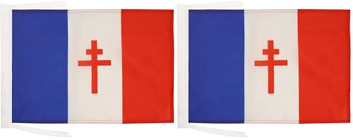 AZ FLAG - Drapeau France libre 1940-1944 - 45x30 cm - Pavillon Français De La Résistance 100% Polyester Avec Deux Cordelettes - 20g (Lot de 2)