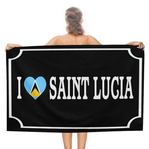 Serviettes de plage « I Love Sainte-Lucie », résistantes à la décoloration, sans sable, sans rétrécissement, pour adultes, mignonnes, Amérique latine, pays hispaniques, Europe, Asie, Afrique, drapeaux