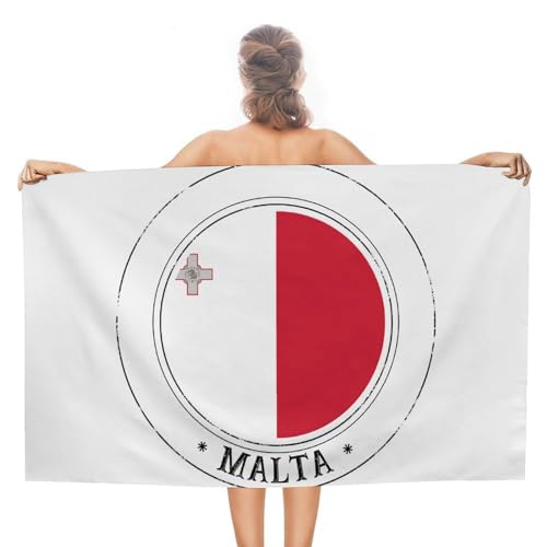 Serviette de plage Malte absorbante 78,7 x 139,7 cm en coton compact pour voyage, spa, natation, salle de bain personnalisée, Amérique, pays hispanique, européen, Asie, Afrique, drapeaux, voyage,
