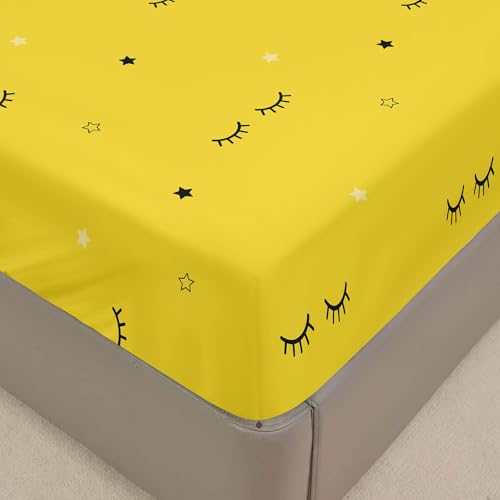Surwin Drap Housse 140x190,Doux Draps Housses en Microfibre, Imprimé Cils Drap-Housse avec Une Rebord Élastique pour 30cm Protection de Matelas Épais