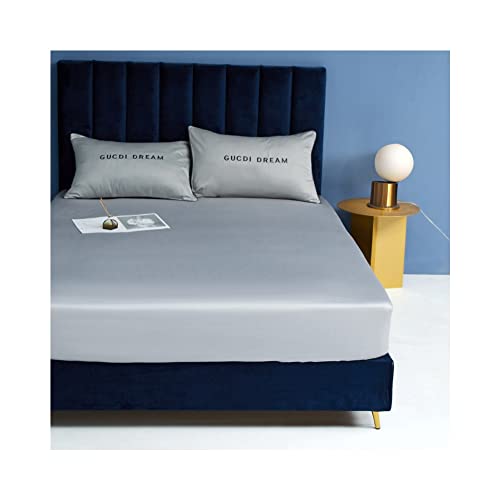OBONG Satin Drap Housse 150/180x200 Draps Housses en Coton à Fibres Longues pour Matelas épais Drap-Housse 1/2 Personne Protège Matelas Draps De Lit Bonnet 30cm (Color : Greay, Size : 150x200+30cm)