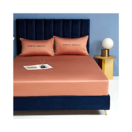 Satin Drap Housse 150/180x200 Draps Housses en Coton à Fibres Longues pour Matelas épais Drap-Housse 1/2 Personne Protège Matelas Draps De Lit Bonnet 30cm (Color : Orange, Size : 150x200+Pillowcase