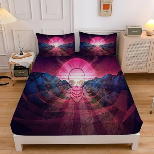 Drap Housse 90x190 Squelette Drap-Housse Doubler Draps Housse Microfibre avec Grand Bonnet de 30 cm, et 2 Taies d'oreillers, Lot Draps Housse, pour Matelas éPais