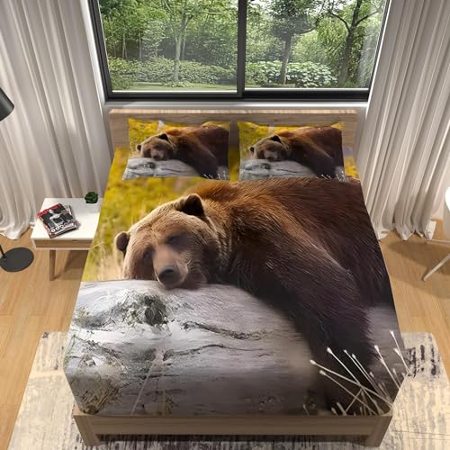 Drap Housse 160x200 Ours, 3D Drap-Housse Ours Drap Poche Profonde 30 cm, Draps Housse Microfibre, 2 Taies d'oreillers, pour Matelas éPais u101