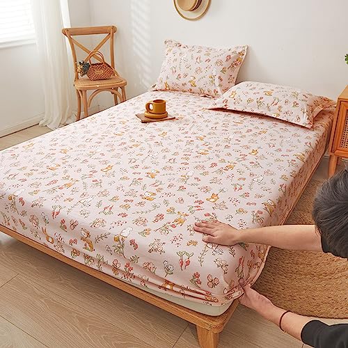 Drap Housse 140x200 Petit Floral Drap-Housse Rose Drap Plat pour Lit avec Grand Bonnet de 30 cm Draps Housse Microfibre et 2 Taies d'oreillers, pour Matelas éPais