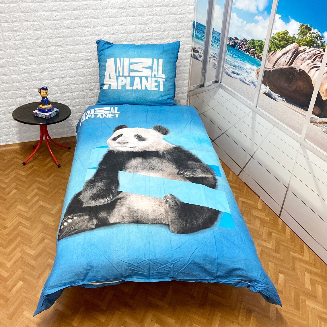 Panda Animal Planet Set Draps Lit Simple, copripiumino 160x200 Coton