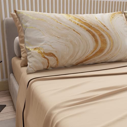 PETTI Artigiani Italiani - Parure de Draps en Coton pour Lit Double avec Taies d’Oreiller et Drap Housse 160x200, Motif Marbre Beige, 100% Fabriqué en Italie